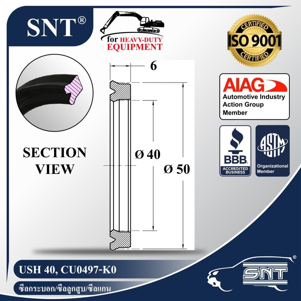 ● ชื่อสินค้า : USH 40 - Symmetrical Seal / Rod Seal / Piston Seal ( ซีลกระบอก / ซีลลูกสูบ / ซีลแกน ) ● แบรนด์ : SNT (USA Trademark) ● มาตรฐานคุณภาพ : ISO 9001, ASTM (American Society for Testing and Materials), AIAG (Automotive Industry Action Group) ● OEM / Replacement Part No. : USH-40, CU0497-K0, USH40, CU0497K0 ● รถ/รุ่น : - ● ขนาด USH 40 x 50 x 6 . เส้นผ่านศูนย์กลางภายนอก : 50 mm. . เส้นผ่านศูนย์กลางภายใน : 40 mm. . สูง1 : 6 mm.