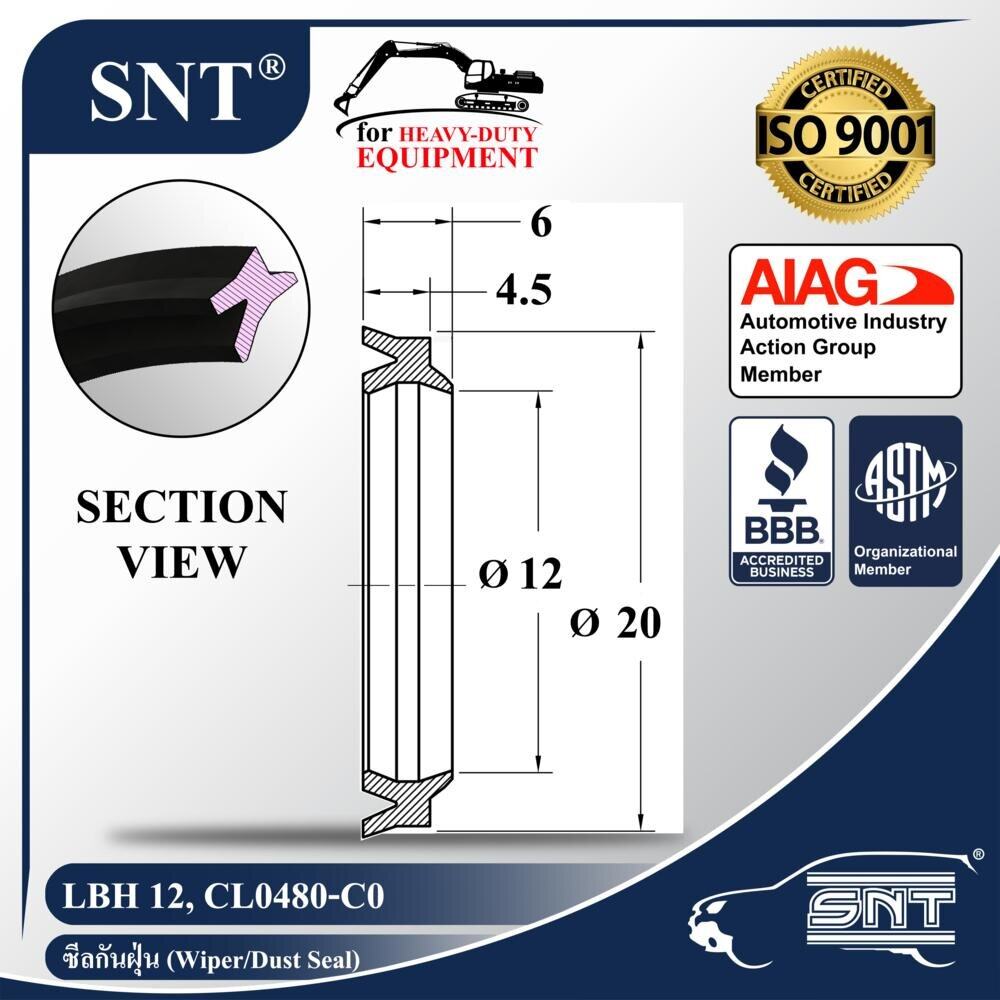 ● ชื่อสินค้า : LBH 12 - Wiper Seal / Dust Seal ( ซีลกันฝุ่น ) ● แบรนด์ : SNT (USA Trademark) ● มาตรฐานคุณภาพ : ISO 9001, ASTM (American Society for Testing and Materials), AIAG (Automotive Industry Action Group) ● OEM / Replacement Part No. : LBH-12, CL0480-C0, LBH12, CL0480C0 ● รถ/รุ่น : - ● ขนาด LBH 12 x 20 x 4.5/6 . เส้นผ่านศูนย์กลางภายนอก : 20 mm. . เส้นผ่านศูนย์กลางภายใน : 12 mm. . สูง1 : 4.5 mm. . สูง2 : 6 mm. ● วัสดุ : ยาง NBR (ASTM Standard) ● อุณหภูมิใช้งาน : -30°C ~ 100°C / -22°F ~ 212°F ● อายุการเก็บผลิตภัณฑ์ : 5 - 10 ปี ● การรับประกัน : 1 ปี ( ในกรณีที่เกิดความผิดพลาดจากการผลิต ) -------------------------------------------------------- 🔘 คุณภาพระดับไหน ที่ทำให้ลูกค้าทั่วโลกเลือกใช้สินค้าของ SNT -------------------------------------------------------- ↗ มาตรฐาน ISO 9001: 2008, ISO 9001: 2015 ▶SNT ผ่านการตรวจสอบกระบวนการผลิตและคุณภาพที่เข้มงวด โดยได้รับการรับรอง ISO 9001 : 2015 ที่ครอบคลุมระบบการจัดการคุณภาพทั้งทั้งระบบ จากสถาบัน UKAS (ประเทศอังกฤษ)
