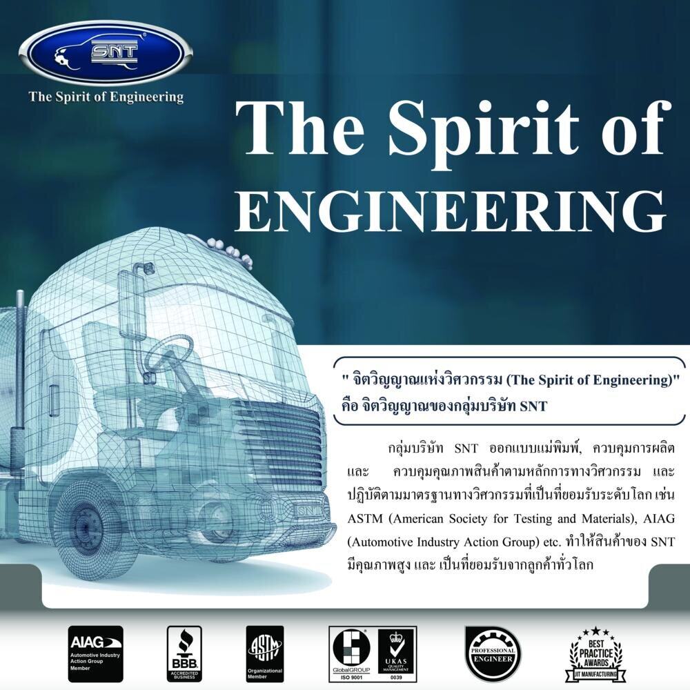 ↗ ควบคุมการผลิตและควบคุมคุณภาพโดยวิศวกรผู้เชี่ยวชาญ ▶SNT ควบคุมการผลิตและควบคุมคุณภาพโดยวิศวกรซึ่งเป็นสมาชิกระดับผู้เชี่ยวชาญ (Professional Member) จากสถาบันชั้นนำของสหรัฐอเมริกา อาทิเช่น สมาคมวิศวกรรมเครื่องกลแห่งสหรัฐอเมริกา (The American Society of Mechanical Engineers, ASME), สมาคมวิศวกรรมยานยนต์แห่งสหรัฐอเมริกา ( The Society of Automotive Engineers, SAE), สถาบันการบินและอวกาศแห่งสหรัฐอเมริกา (The American Institute of Aeronautics and Astronautics, AIAA) เป็นต้น ทำให้มั่นใจได้ว่าสินค้าของ SNT มีคุณภาพสูง
